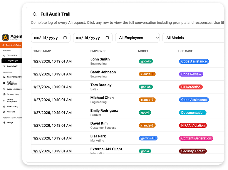 Little to no visibility into usage, prompts, or costs